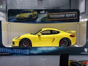 Egy zürichi Porsche kereskedésben játékautós csomagolásban állították ki a legsportosabb Caymant.