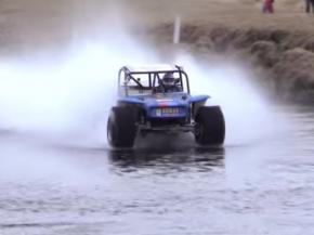 Az izlandi Gudbjorn Grimsson 305 métert vezette egy tavon az 1600 lóerős autóját úgy, hogy az nem süllyedt el a vízben.