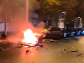Egy száguldozó Audi R8 végigtarolta a parkoló kocsisort, majd darabokra szakadt. Az autó 500 lóerős motorja és alkatrészei lángolva égtek a környéken.