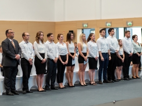 „Idegennyelvű ipari és kereskedelmi ügyintéző” képesítést vettek át ünnepélyes keretek között a szakképzés első végzős évfolyamának tanulói az Audi Hungaria ÁMK-ban.