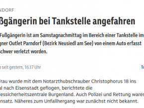 Elütöttek egy gyalogost a benzinkútnál – írja az orf.at.