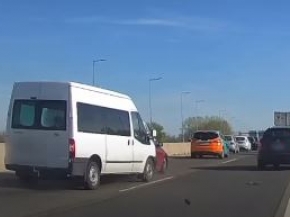 Egy fedélzeti kamera rögzítette az esetet április 12-én az M5-ös autópálya kivezető szakaszán.