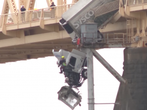 A közúti balesetek mindennaposak, de meglehetősen ritkán fordul elő, hogy kamionok sodródnak le a hídről, és még ritkább, amikor beakadva a híd fémszerkezetébe, lelógnak róla, sofőröstül.