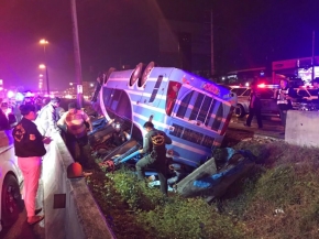 Szombat este árokba hajtott egy busz az M1-es autópályán Lébény térségében, a 140-es kilométernél, a főváros felé vezető oldalon, a buszon mindenki megsérült.