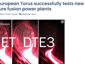 A Joint European Torus (JET), a világ egyik legnagyobb fúziós berendezése, fúziós energiát állított elő és megdöntötte az egy plazma kisülésben megtermelt fúziós energia világrekordját.