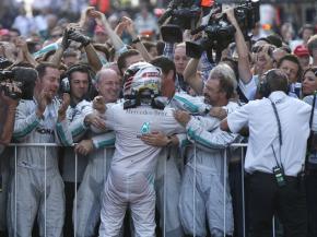 A brit sikerére csak Nico Rosberg lehetett volna veszélyes, de a német komoly hibát vétett az első körben. Újabb kettős győzelmével megszerezte első konstruktőri világbajnoki címét a Mercedes.
