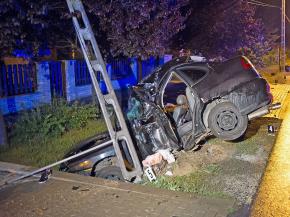 Összeroncsolódott személyautó, amely villanyoszlopnak ütközött Vácrátóton az Alkotmány úton 2016. július 16-án hajnalban. A gépkocsiban hárman utaztak, egy férfi az ütközés következtében kirepült a járműből, a helyszínen életét vesztette. A másik két utas - egy férfi és egy nő - életveszélyes...