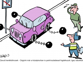 Heti rajzunk készítője Kelemen István, karikatúrájának címe: Elavult kerékbilincsek.
