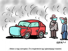 E heti rajzunk készítője Kelemen István, rajzának címe: Maszkot az autóra is.