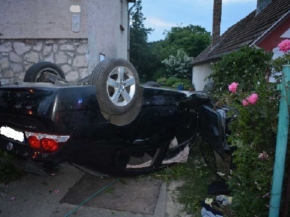 Neszmélyen egy hondás férfi egy ingatlan kerítésének, majd egy másik épület falának ütközve annak udvarán felborulva állt meg.