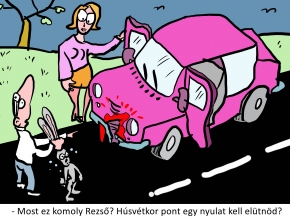 Heti rajzunk készítője Kelemen István, karikatúrájának címe: Húsvéti közúti ellenőrzés.