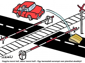 Heti rajzunk készítője Kelemen István, karikatúrájának címe: Ha menni kell.