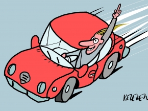 Heti rajzunk készítője Kelemen István, karikatúrájának címe: Elavult kerékbilincsek.
