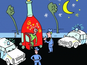 E heti rajzunk készítője Kelemen István, rajzának címe: Közúti ellenőrzés szüret idején.