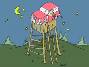 E heti rajzunk készítője Kelemen István, rajzának címe: Jenő a szállodán spórol.