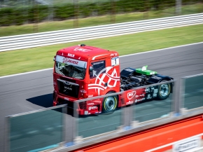 A Révész Racing címvédő és négyszeres Európa-bajnok versenyzője szombaton az első futamot megnyerte, a másodikban pedig negyedikként ért célba a gyorsasági kamion Eb csehországi állomásán.