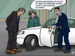 E heti rajzunk készítője Lugosi Károly, karikatúrájának címe: Kis autó, nagy szív.