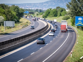 Oldalára borult egy kisteherautó az M3-as autópálya Budapest felé vezető oldalán, a 15-ös kilométerszelvénynél, Fót közelében.