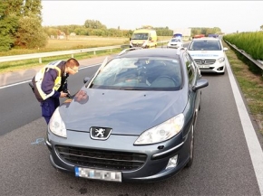 Az M5-ös autósztrádán Röszke Autópálya-határátkelőhely közelében, a kilépő irányba fél pályán halad a forgalom.