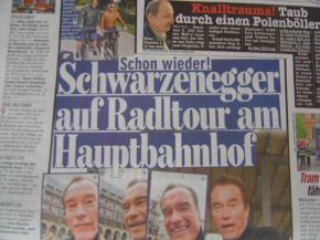 A szakadó eső ellenére kerékpárra ült Münchenben Arnold Schwarzenegger, a Terminátor, Ausztria leghíresebb embere, egykori kaliforniai kormányzó, s persze mindenek előtt filmszínész.