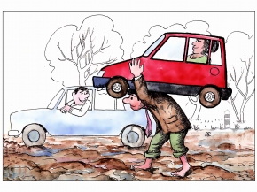 Makhmudjon Eshonkulov Üzbegisztánból küldte rajzát az Autós Nagykoalíció és az autoszektor.hu karikatúra pályázatára.