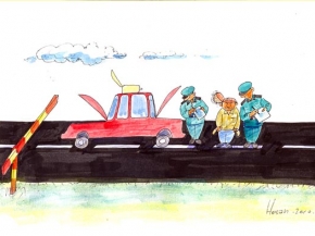 Husan Sodiqov Üzbegisztánból küldte rajzát az Autós Nagykoalíció és az autoszektor.hu karikatúra pályázatára.
