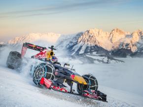 Hóláncot szereltek az RB7-re, és felvitték a kitzbüheli hegyekbe, ahol Max Verstappen vezette.