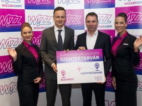 Szentpétervárra indít járatot a Wizz Air Budapestről augusztus végétől - jelentette be Váradi József, a légitársaság vezérigazgatója Budapesten Szijjártó Péter külgazdasági és külügyminiszter jelenlétében.