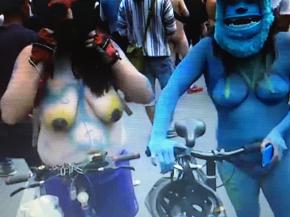Anyaszülten vagy alig felöltözve pattantak kerékpárra, hogy az autóforgalom zaja és környezetszennyezése ellen tiltakozzanak. A ruhátlan nők látványa vonzotta a médiát.