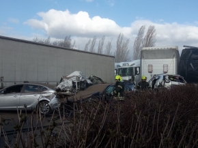 Tucatnyi személyautó sérült meg az M35-ös autópálya Debrecen felé vezető oldalán, a prodi pihenőhely után, a 9-es és a 10-es kilométer közötti szakaszon.