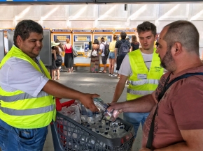 - A budapesti főpályaudvarokon és a nagyobb vidéki vasúti, valamint autóbusz állomásokon ásványvizet biztosít utasainak a vasúttársaság a hőségriasztás ideje alatt - közölte a Mávinform szerdán az MTI-vel.