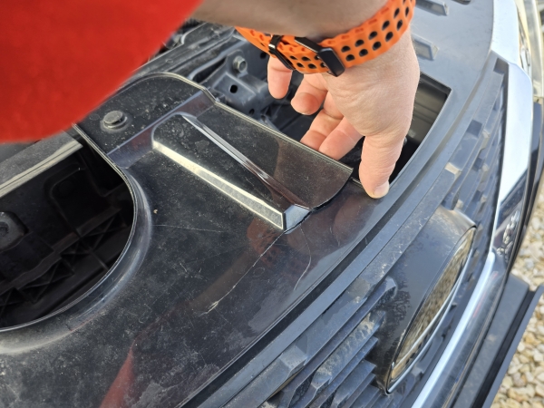 Amikor felnyitottuk a motorház fedelet, akkor sajnos azonnal beleakadt a szemünk a törött zárhíd burkolatba. A kocsi elején más, olyan nyom, vagy érték, amelyből korábbi komolyabb javításra lehetett volna következtetni, nem volt.