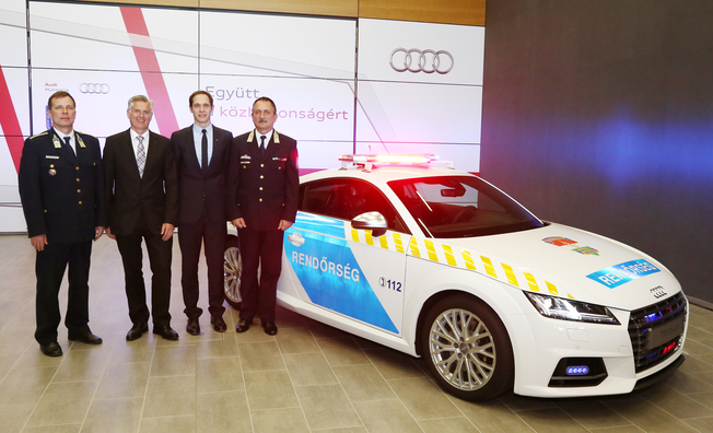 Az Audi számára kiemelten fontos a közlekedésbiztonság - fogalmazott a rendezvényen Walker, aki elmondta azt, a biztonságot egyrészt az autóba beépített vezetéstámogató rendszerekkel, másrészt pedig a rendőrségnek adott autókkal szolgálják.