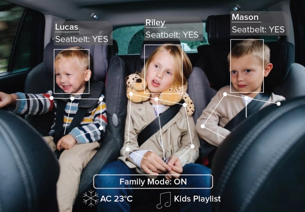 Hogy ne csak a sofőr részesüljön a figyelemből, vannak olyan AI-rendszerek is, amelyek minden utast monitoroznak és tanulnak róluk. Ez azt jelenti, hogy az autóba épített rendszer felismeri a család tagjait, figyeli a biztonsági öveket vagy éppen azt, hogy beszél-e az adott személy és hogy hangját utasításként fogja-e fel vagy hagyja figyelmen kívül.