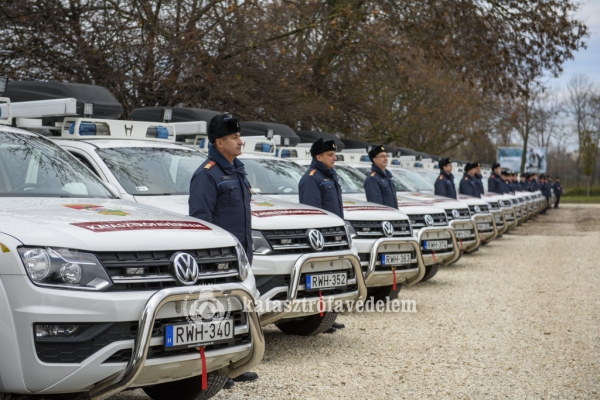 A járműveket ünnepélyes keretek között vehették át december 15-én a főigazgatóság székházában a vármegyei igazgatóságok és önkéntes szervezetek vezetői.