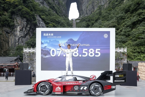 A „Tianmen Shan Big Gate Road” út a Tianmen hegységben egy igazi próbatétel. Romain Dumas bátran, de a feladatot tisztelve vágott neki a 10.906 kilométer hosszú „Kínai Kihívásnak” a „Mennyek Kapuja” – egy 131,5 méteres természetes boltív - felé. 99 hajtűkanyar, némelyik csupán hat méter sugarú, majd azt követően rövid egyenesek és akár 230 km/órás sebességet is lehetővé tévő, gyors kanyarokkal tarkított útszakaszok és kemény fékezésekkel bevehető extrém keskeny alagutak. Dumas tökéletesen teljesítette ezeket a komoly kihívásokat és egy új hivatalos rekordot is felállított mindeközben. Az ID.R hajtásáról két elektromos motor gondoskodik, ahol a rendszer összteljesítménye 500 kW (680 LE), az erőátvitelnél pedig az egyedi készítésű Bridgestone Potenza abroncsok voltak segítségére. A rajt illetve a célvonal kijelölése - kifejezetten az ID.R rekordkísérlete miatt - közjegyzői hitelesítéssel történt.