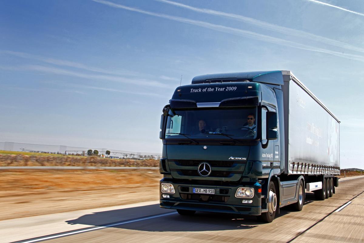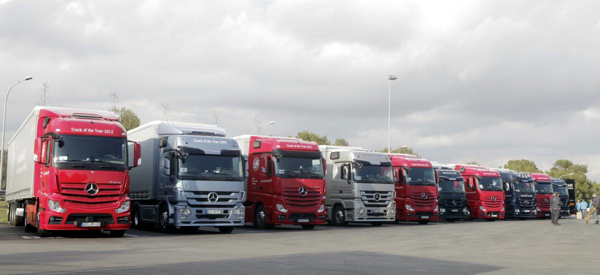Egy könnyű mediterrán ebéd után kocsit és navigátort cseréltünk. A konvojban 12 kipróbálható Actros kapott helyet, 6 új és 6 régi, amelyeket felváltva vezettünk. Természetesen nem konvojban haladtunk, ez egyrészt közlekedésbiztonsági szempontból sem lett volna szerencsés, másrészt a járművek eltérő teljesítménye miatt is nehézkes lett volna. Most tehát egy régi, a 2009-es év teherautója címet is elnyert jármű következett a sorban.