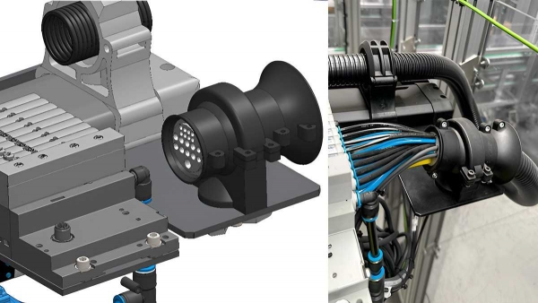 Például a pneumatikus, elektromos kábelek elvezetését pontosan kell megoldani a robotkaros megoldásoknál. Ilyenkor a KLS-2000-nél olyan egyedi rögzítőelemeket terveznek, amelyek pozícióban tartják a kábeleket és megakadályozzák a kopást és elhasználódást.