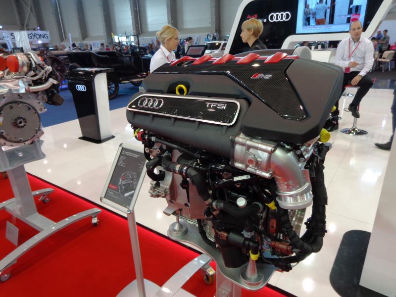 Természetesen a gyári stand is tartogat izgalmakat, az itthon készülő RS3 Limousine, TT RS és S3 Cabriolet mellett három motort is kiállítottak. Az egyik az előbbi két modell erőforrásául szolgáló 2,5 literes öthengeres 400 lóerős motor, amely immár hétszer nyerte el egymás után a megtisztelő Engine of the Year díjat. A továbbfejlesztés után könnyebb és erősebb lett a motor, a korábbi 340, illetve 360 helyett már kereken 400 lóerőt ad le 480 Nm-es nyomaték mellett. Van még egy tulajdonsága, ami garantáltan megemeli a sofőr pulzusát: az utánozhatatlan öthengeres, gurgulázó orgánum, ami sokban emlékeztet a 80-as évek legendás Quattro raliautónak hangjára.