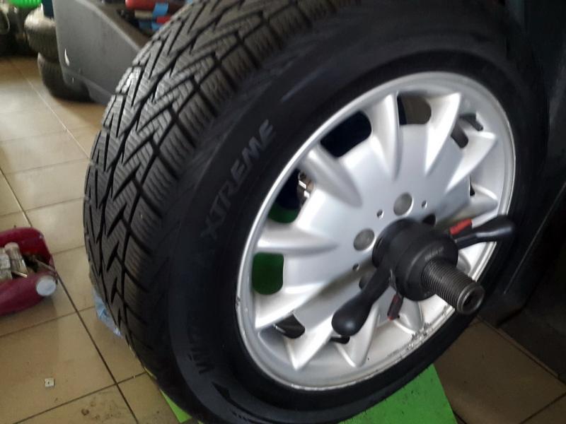 Viszonylag jó állapotú téli abroncs a centrírozó gépen - nem érdemes fent hagyni