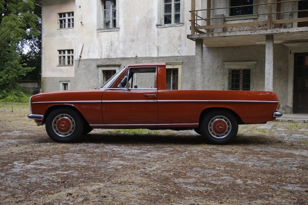 A legendás Paul Bracq tervezte W 114/W 115-ös, ismertebb nevén állólámpás Mercedes (Németországban az első gyártás évéről /8-nak, azaz Strich Achtnak – per nyolcasnak hívják) a maga idejében rekorder volt a stuttgarti márka típusai között, ugyanis 1968 és 1976 között több mint 1,9 milliót értékesítettek belőle. Ebbe a mennyiségbe az a pár tízezer, Argentínában gyártott pickup is benne van, amit a helyi piac számára készítettek a 70-es évek közepén. Ez volt a negyedik karosszériaváltozat a szedán, a hosszított limuzin és a kupé mellett, kombi nem létezett.