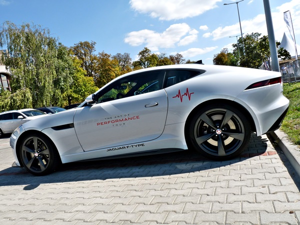 Árcédulája és teljesítménye révén is kilógott a sorból a Jet/Yellow Contrast-os 400 Sport jelzésű F-Type Coupé, melynek erőforrása 20 lóerővel licitál rá az eddig felsoroltakra. Éppen ezért a 45 perces próbakört az említett járgánnyal tettük. Csörgő László értékesítő és egyben vezetéstechnikai instruktortól menet közben megtudtuk, miért is rendhagyó a második alkalommal meghirdetett rendezvény. „Egyrészt nem csak a potenciális Jaguar vásárlók számára szól a meghívás, ugyanis a vérbeli autórajongókat és a márkát éppen felfedező, ismerkedni vágyó autósokat is szívesen látjuk. Másrészt pedig a tapasztalataink azt igazolják, hogy a fővárosi és a budaörsi szalon meghosszabbított keze lehet egy ilyen rendezvény, hiszen a három nap alatt, a reggel 9 és este 6 óra közötti időszakban egy sokkal szélesebb körű és összetételű csoport kerül testközelbe a márka modelljeivel, melyre kevésbé lehet szert tenni a megszokott értékesítési metódus során”.