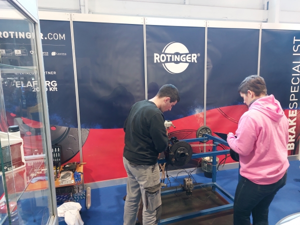 A hatodik állomás feladatainak teljesítéséhez az „A” pavilonba kellett menni a versenyzőknek, hiszen az Elaforg 2000 Kft. és a TISZK Kft. is standja is ott volt látható. Az Elaforg a Rotinger márkát emelte ki a kiállításon, ennek megfelelően a feladat is fékszerviz volt. A kiállított fékrendszer-szimulátoron kellett elvégezni egy féktárcsa-cserét a szükséges mérésekkel.