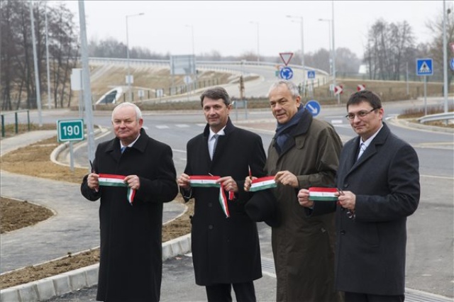 Manninger Jenő országgyűlési képviselő (Fidesz), Zala megyei fejlesztési biztos arról beszélt, hogy Nagykanizsának a vasúti közlekedésben is csomóponti szerepe van, így a Szombathely és Nagykanizsa közötti szakasz, az európai észak-déli közlekedési folyosó részeként további fejlesztésre számíthat. Dénes Sándor, a város polgármestere (Fidesz-KDNP) azt hangsúlyozta, hogy az újonnan elkészült út nemcsak a várost és a környezetet kíméli, hanem a vállalkozások lehetőségeit is bővíti. Új területeket tár fel és megkönnyíti a szállítást, a cégek egymás közötti kapcsolatát - mutatott rá. Kardos Gábor, a beruházó Nemzeti Infrastruktúra Fejlesztő Zrt. (NIF) műszaki igazgatója elmondta: a NIF minden idei vállalását hiánytalanul teljesíti az év végéig. A most átadott útszakaszról ismertette: a 3,3 kilométer hosszú út része egy új körforgalmú csomópont, egy vasúti átkelőt felváltó felüljáró. Új becsatlakozások és autóbuszmegállók is készültek a beruházás keretében.