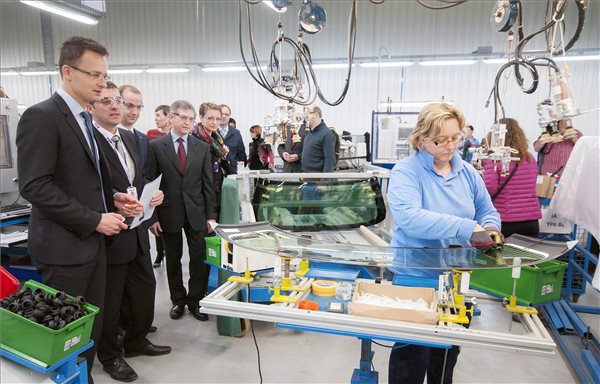 Az új, 8300 négyzetméteres gyártócsarnok felépítése mellett kapacitásfejlesztést is végeztek, így a korábbi 12 másodperc helyett 8 másodpercenként készül el egy hátsó szélvédő.