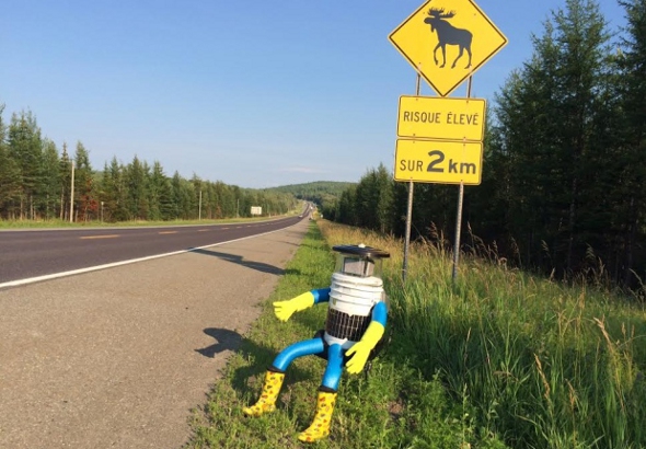 HitchBot arca helyén vörös kijelző, sárga hordótestét fekete csillagok díszítik, keze-lába uszodai habszivacs. Hosszú útja közben részt vett egy esküvőn és egy indián ceremónián is. Kalandjait rajongók tízezrei követték és kommentálták, érkezését alaposan megünnepelték Victoria egy művészeti központjában.