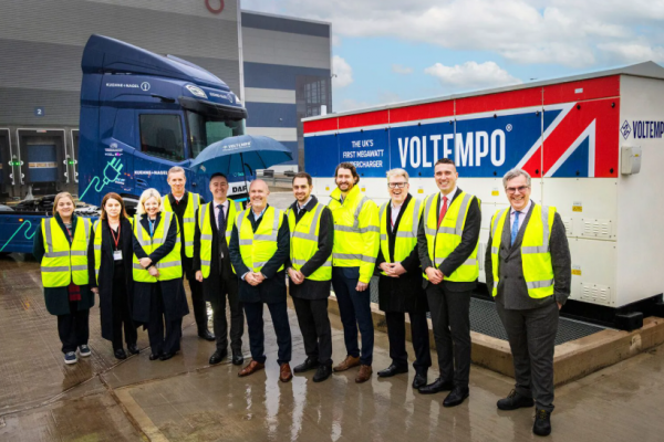 Az elektromos DAF New Generation XF útja a Kuehne+Nagel East Midlands Gateway raktárából indult, ahol 12 tonna áruval megrakott félpótkocsit kapcsoltak mögé. Innen a jármű a Voltempo HyperCharger állomáson töltötte fel akkumulátorát – ez az Egyesült Királyság első, megawatt-szintű töltésre képes infrastruktúrája.