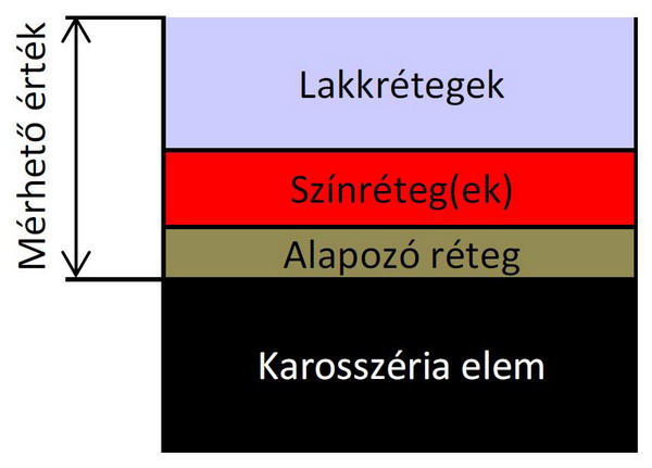 Akinek van ilyen műszere és tudja hogyan fényezik az autókat, az a leolvasott értékekből sok mindent ki tud olvasni. Az autógyárak a karosszéria elemeket egy vékony alapozó réteggel látják el. A jármű színét adó festékréteg a csillogást biztosító ásványi anyagokat is tartalmazza, ettől lesz egy fényezés metál-, vagy gyöngyházhatású. Végül jönnek a lakkrétegek, ettől lesz szép, fényes a kocsi, és ebből a rétegből lehet lecsiszolni polírozáskor. Egy gyári elemen nincs több réteg, ha ráhelyezzük a rétegmérőt, akkor annak szenzora és az alap fémlemez közötti távolságot képes megmérni, vagyis a felhordott összes réteg együttes vastagságát. Ez a legtöbb gyártónál 100 és 150 mikron között van, vagyis a milliméter tizedrésze nagyságrendű a vastagság.
