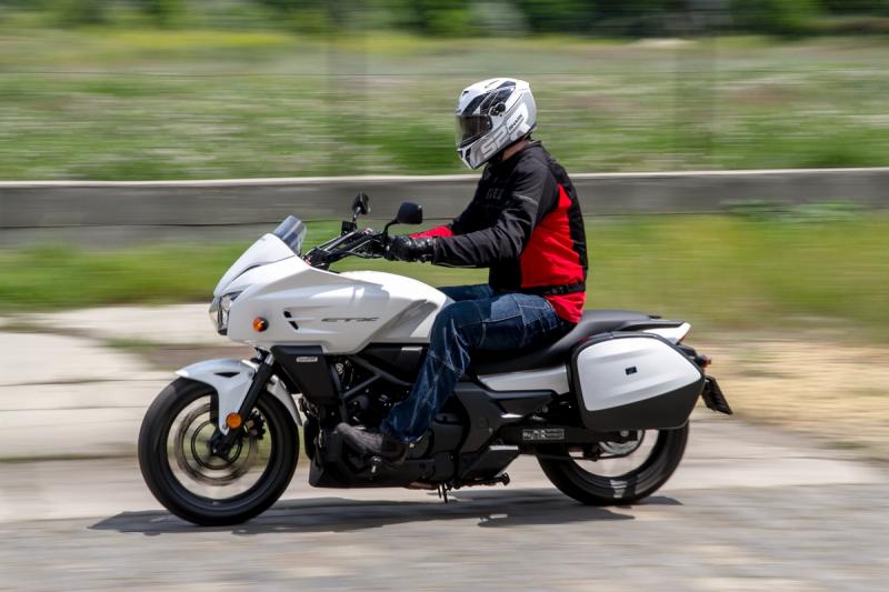 Viszont a motor kezelhetősége ezektől eltekintve példásan könnyed. Ennek egyik összetevője a megfelelő súlyelosztás, ami a tekintélyes mértékben, 62 fokban előredöntött motorblokknak köszönhető. Fel sem tűnik a CTX 244 kilós tömege, hiszen amint megmoccan a motor, olyan, mintha megszűnne a gravitáció. Gyakorlatilag játszi könnyedséggel pakolgathatjuk jobbra-balra, jobbról balra, haladéktalanul engedelmeskedik az akaratunknak. Nem kell attól sem tartani, hogy a lábtartók hamar szikrát hánynak, sokkal később érik el az aszfaltot, mint ahogy azt várnánk a motor látványa alapján. Vagyis a hétköznapokban csodásan használható, pályára meg nem ilyen kétkerekűvel jár az ember.