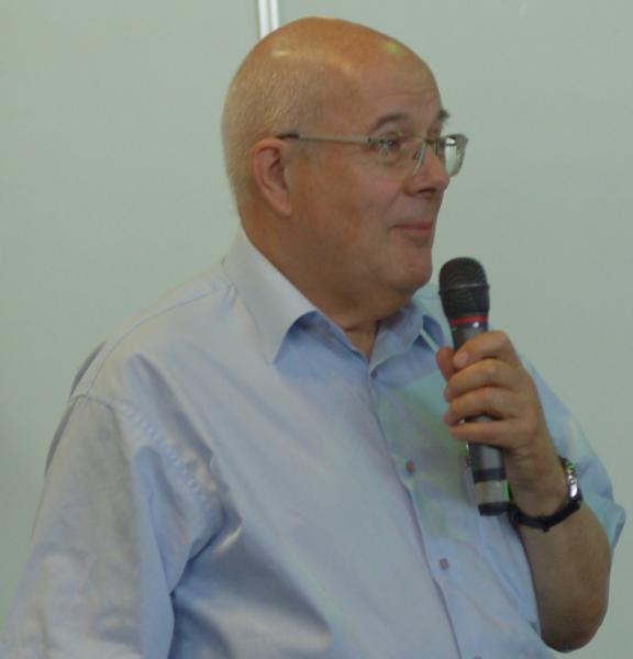 Papp László előadása elején a VW Konszern villany és hibrid autó fejlesztésének történetét foglalta össze az 1800-as évek végétől kiindulva. A rendezvény különös érdekessége volt, és sok érdeklődőt vonzott, amikor Papp László az előadóterembe behajtott a második generációs elektromos hajtású VW Golffal és szinte minden részletre kiterjedő bemutatót tartott. A műszerfal kijelzői például a vezetőt pontosan tájékoztatják a gépkocsi pillanatnyi állapotáról. De ezt most a sorokban ülő résztvevők is jól láthatták, mert a kézi kamera és a nagy felületű kivetített kép jól láthatóvá tette mindenki számára.
